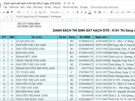 Kính gửi các học viên khóa 169 và các thí sinh khóa cũ thi lại, thi phục hồi. Sở GTVT Ninh Bình sẽ tổ chức sát hạch lấy GPLX cho khóa 169 vào ngày 11/2/2023 đến ngày 12/2/2023. Danh sách được chia thành 2 ngày: buổi sáng, buổi chiều, anh chị cần có mặt đúng giờ để kiểm tra lại giấy tờ, hồ sơ, số báo danh và đến đúng buổi hẹn. Các thí sinh có thể xem danh [...]